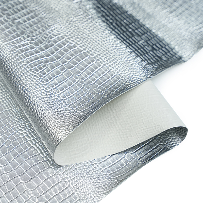 الميزة المميزة لهذا الجلد الاصطناعي هي لونه الفضي الأنيق والمشرق. يضيف النهاية المعدنية جودة لامعة ، مما يخلق سطحًا عاكسًا يمسك بالضوء. والنتيجة هي مظهر مذهل وحديث يرفع الجمال بشكل عام من الحقائب.